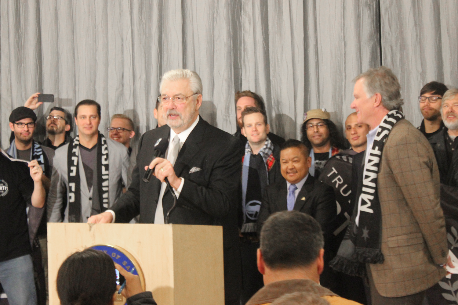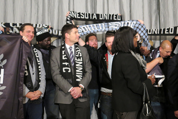 “We love United, we do … United we love you!” supporters of the Minnesota United soccer team shouted as city and team leaders officially announced a not-so-well-kept secret: St. Paul will be the new home for the Major League Soccer-bound team, which has committed to playing in an 18,000-seat stadium to be built near Snelling and University avenues in the city’s Midway area.